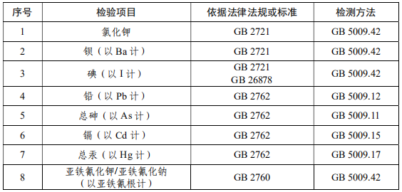 低鈉食用鹽檢驗(yàn)項(xiàng)目